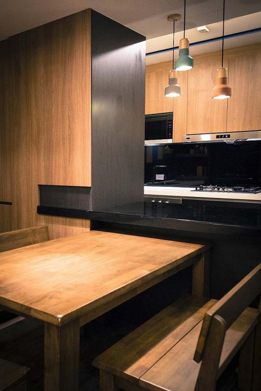 裸露的混凝土牆、金屬絲網、牆上走線的銅管、幽暗的色彩,這座53㎡的小公寓帶著濃烈的工業風格,據說業主是個搞音樂創作的姑娘,相信一定很帥氣。
